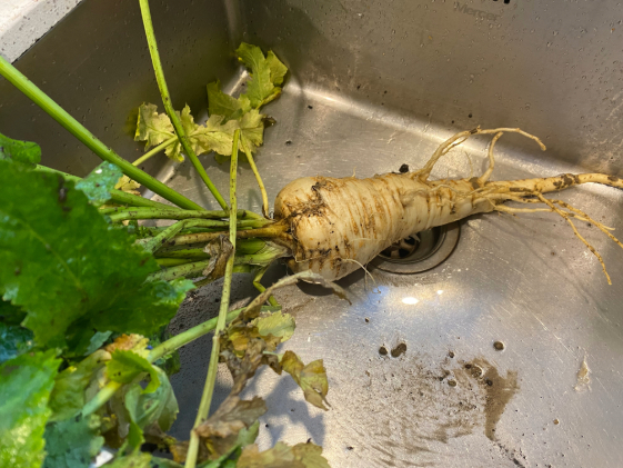 Harvesting at the right time is just as important as sowing seed and planting out seedlings at a good time. Our parsnips are perfectly ready for harvest. They’re great roasted or made into soup – just a lovely subtle taste for winter.