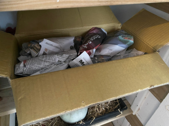 This year on Rob’s recommendation, once hardened off and wrapped individually in newspaper, I’m packing them close together so they retain a bit of moisture. Last year they dried out too much in storage.