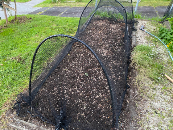 I popped the last of our barley straw in the new troughs to keep it all stable. I’ll put more straw round the plants themselves in time to come so the fruit isn’t sitting on soil. A good water in with the liquid seaweed we soaked the plants in and the bed is netted.
